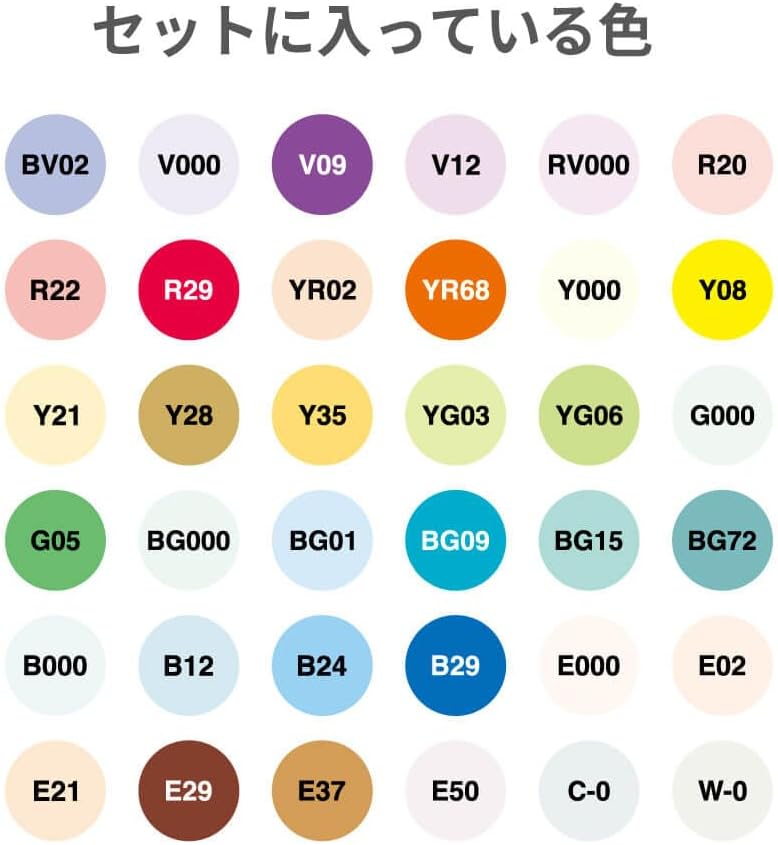 This set includes colours that do not overlap with the popular Copic Ciao Start 12, 24, and 36-colour sets or the Copic Debut Set.Add it to your existing collection and enjoy a wider range of expression.