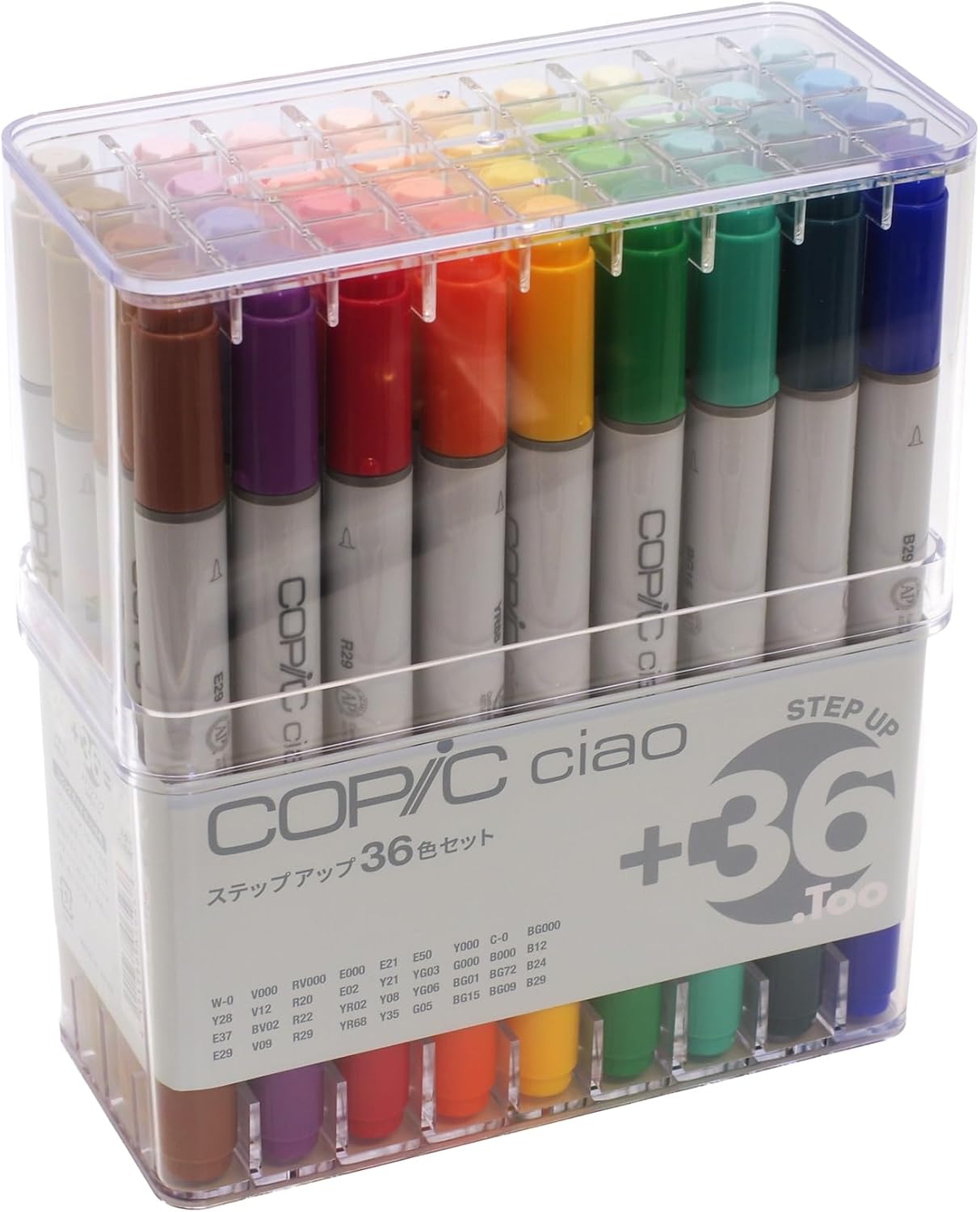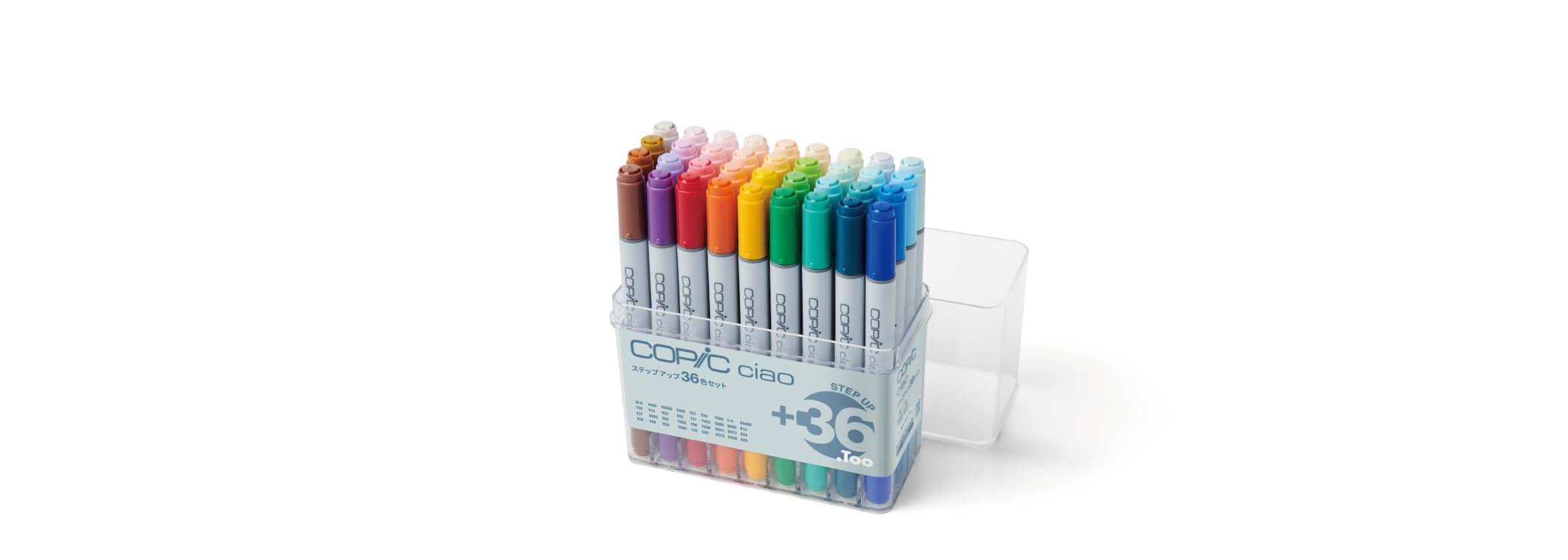 By adding this set, you can match the colour lineup of the Copic Ciao Start 72 Set.If you already own the Copic Ciao Start 36-Colour Set, purchasing the Step-Up 36-Colour Set will allow you to recreate the full Copic Ciao Start 72-Colour Set palette.