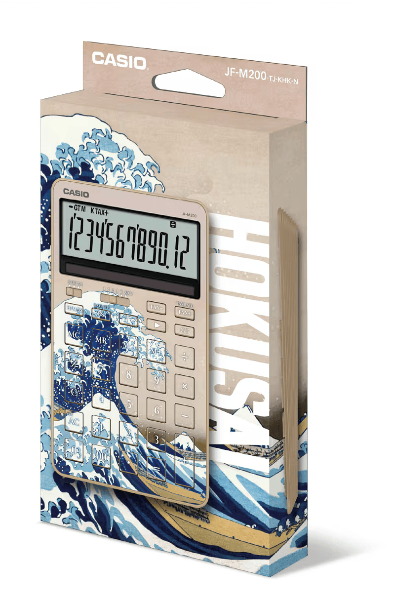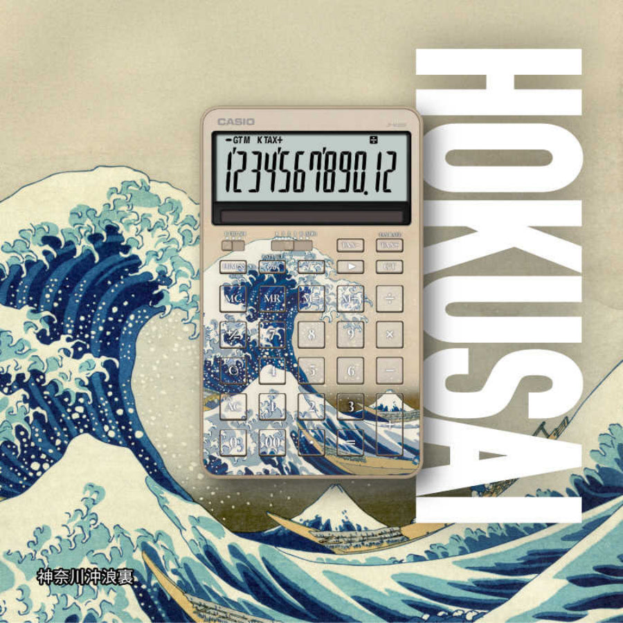 Bring timeless Japanese art into your everyday life with this Stylish Solar Calculator inspired by Katsushika Hokusai’s masterpiece, The Great Wave off Kanagawa. One of the most iconic images in Japanese art history, The Great Wave is celebrated worldwide for its powerful composition, dramatic motion, and deep indigo tones. This design captures the strength and beauty of Hokusai’s ukiyo-e, transforming a practical desk item into a refined piece of art. 🎨 Art Meets Modern Design The base model is a premium, minimalist calculator, carefully chosen to complement the elegance of Hokusai’s artwork. ✨ Key Features Slim & Sophisticated FormClean, straight lines create an intelligent, modern appearance that fits beautifully on any desk—home, studio, or office. Layered Back Design for Comfort & BeautyThe subtly layered edges on the back enhance grip while adding sculptural elegance. Solar Panel Integrated into the DesignThe solar panel blends seamlessly with the display, maintaining a sleek and uncluttered front view. Rib-Free Keys for a Minimal LookA smooth, borderless key layout delivers a calm, refined operating surface. Custom Font Inspired by Traditional Japanese TypographyThe key font has been specially selected to harmonize with the ukiyo-e aesthetic, using a classic Mincho-style typeface that feels both traditional and dignified. Angled Display for Easy ViewingThe slightly tilted LCD screen improves readability when placed on a desk. 🎁 Perfect For Lovers of Japanese art & culture Artists, designers, and creatives Stylish home offices and studios Unique gifts for Japan enthusiasts This calculator is more than a tool—it’s a celebration of Japanese craftsmanship, art history, and modern minimalism. A subtle yet striking way to enjoy Hokusai’s legacy every day. If you’d like, I can also: Optimize this for Amazon US / EU bullet points Shorten it for Shopify product pages Adjust the tone to be more luxury, art-focused, or gift-oriented 📐 Product Specifications Product Name:Stylish Solar Calculator – HOKUSAI “The Great Wave off Kanagawa” Model 📏 Size & Weight Dimensions: 182 × 109 × 20.4 mm(Approx. 7.17 × 4.29 × 0.80 inches) Weight: 193 g (Approx. 6.8 oz) 🔢 Display Digits: 12-digit display Angled LCD screen for improved visibility on desks Calculation status indicator 3-digit comma separation for easy reading 🔋 Power Supply Dual Power System (Solar + Battery) Battery type: CR2025 × 1 Battery life: Approx. 7 years(Based on 1 hour of use per day) Auto power-off function 🌱 Eco-Friendly Eco Mark Certified Product (Certification No. 06135002) 🧮 Memory Functions 2 memory registers Independent memory keys: M+, M−, MR, MC Grand Total (GT) calculation ⌨️ Key Design & Functions Flat plastic keys with a clean, modern feel Fast input support (2-key rollover) Double zero (00) key Backspace key Sign change (+/−) key ⚙️ Display & Rounding Settings Decimal selector: 4 / 3 / 2 / 1 / 0 / ADD2 Rounding selector:Floating decimal / Truncate / Round ➗ Calculation Functions Basic arithmetic (Addition, Subtraction, Multiplication, Division) Constant calculations for all four operations Multi-percent calculations Square root Rounding & estimation calculations Time calculation Tax calculation (Tax rate adjustable, tax amount calculation supported) ✨ Ideal For Japan culture & art lovers Designers, artists, and creatives Stylish home offices and studios Thoughtful gifts with Japanese aesthetic appeal