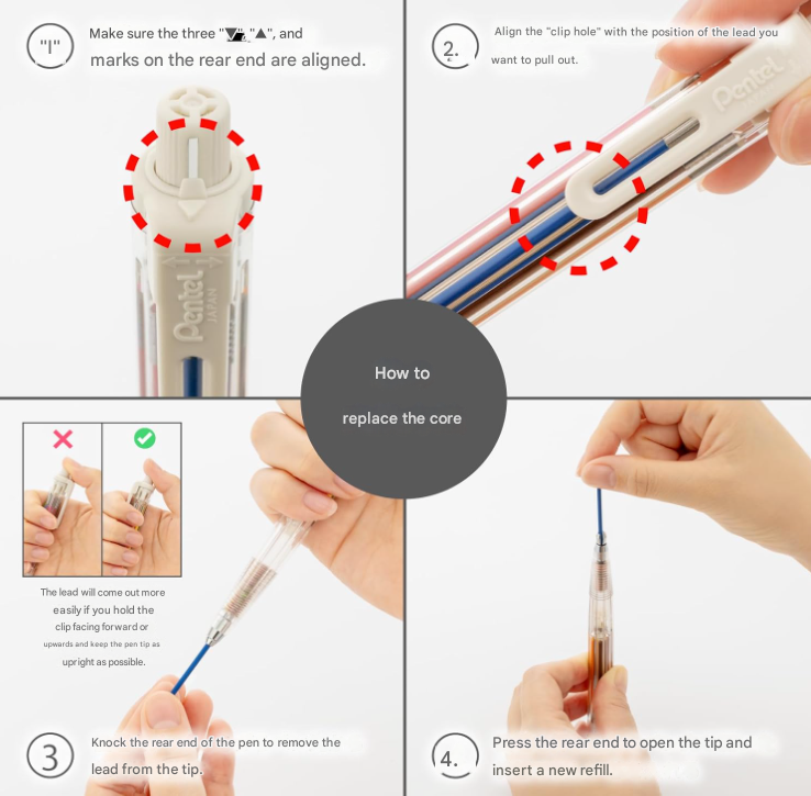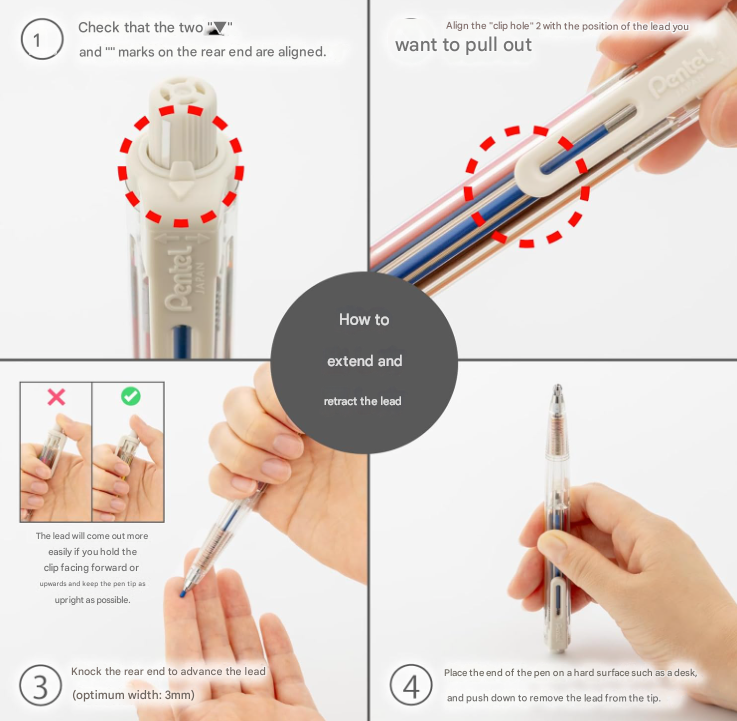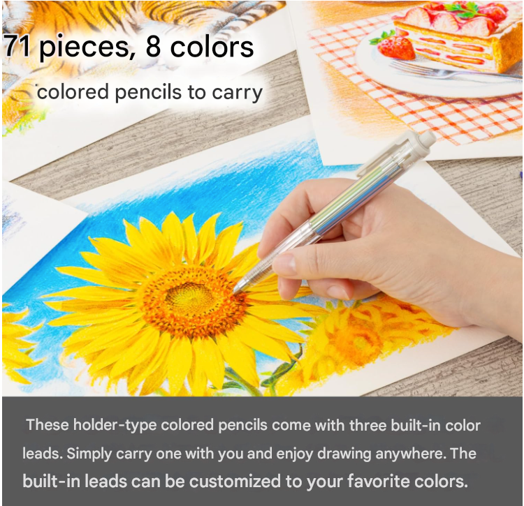 A holder-type mechanical pencil with eight different colored leads built into one pen.