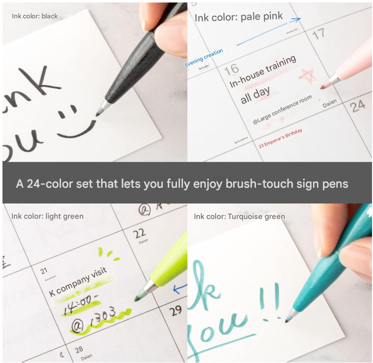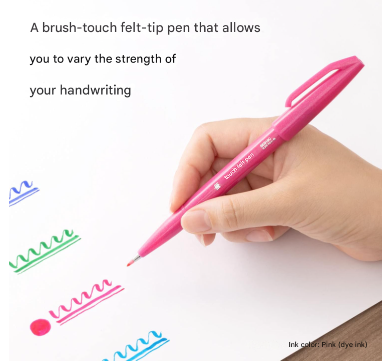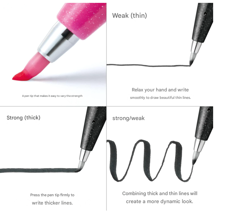Easy Brushstroke Sign PenEven those who are not good at using brush pens can easily use this pen. The flexible yet moderately elastic brush tip allows for expressive brush pen writing.It's perfect for writing quick notes in a calligraphic style or for illustrations.