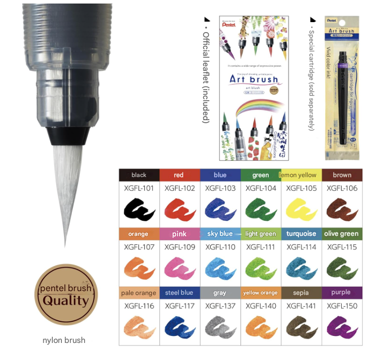 The Art Brush tip uses the world's only "nylon hair processing technology." This unique technology is also used in cosmetic brushes used by professionals and fine-tipped brushes favored by lacquerware artists. It promises the highest level of usability in terms of tip elasticity, durability, and water retention.