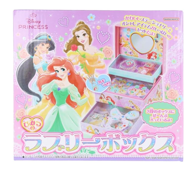 The hugely popular Lovely Box is back this year with a new design! It's a gorgeous item recommended as a Christmas gift! Appearing again this year with a new design! The "Secret Lovely Box". The design features Disney Princesses.① It has a handle for easy carrying. ② It has a lock, so you can store your secret treasures! ③ It comes with a cute heart-shaped mirror. ④ It's full of stylish items like ribbon scrunchies and bracelets!
