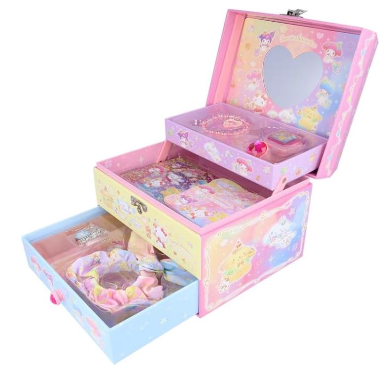 The hugely popular Lovely Box is back this year with a new design! It's a gorgeous item recommended as a Christmas gift! Appearing again this year with a new design! The "Secret Lovely Box".The design features 'Sanrio Characters'. ① It has a handle for easy carrying. ② It comes with a lock, so you can store your secret treasures! ③ It has a cute heart-shaped mirror. ④ It's full of stylish items like ribbon scrunchies and bracelets!