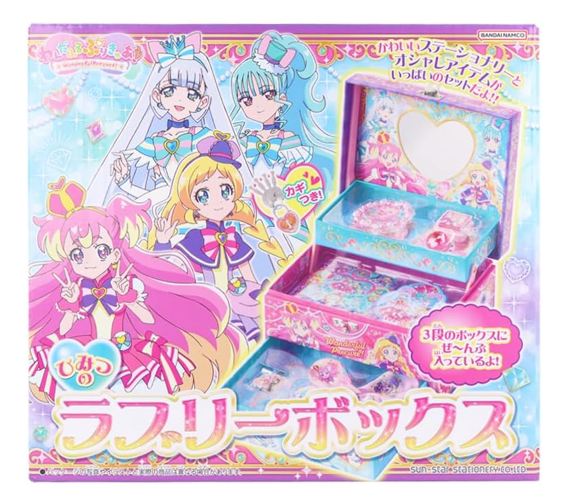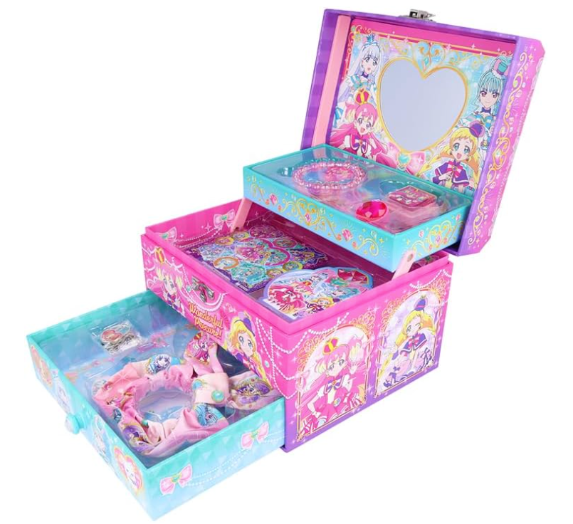 Wonderful Precure!Secret Lovely BoxThe hugely popular Lovely Box is back this year with a new design! It's a luxurious item perfect for Christmas gifts! Appearing again this year with a new design! The "Secret Lovely Box".The design features 'Wonderful Precure!'. ① It has a handle for easy carrying. ② It comes with a lock to store your secret treasures! ③ It includes a cute heart-shaped mirror. ④ It's full of stylish items like ribbon scrunchies and bracelets!