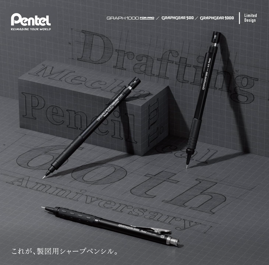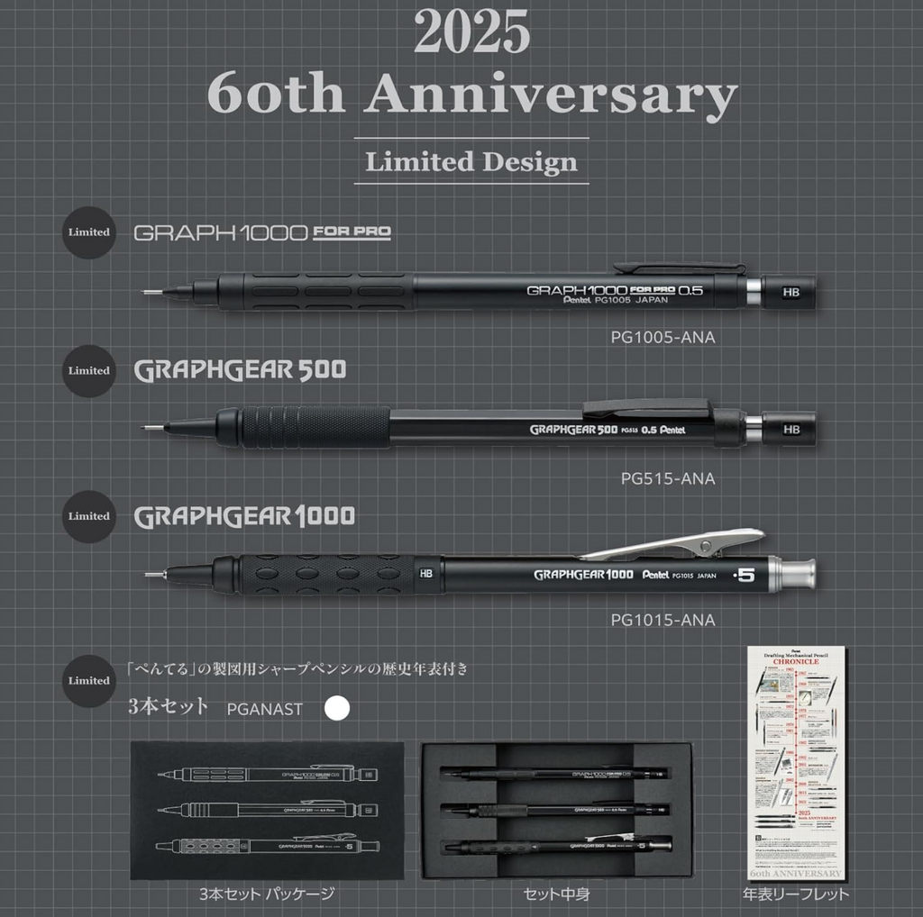 Pentel Mechanical Pencils for Drafting, Set of 3, 60th Anniversary Limited Edition, 0.5mm, PGANAST
